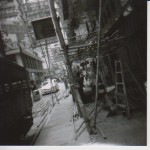 I finally developed a few sample rolls of the 120 film in 4×4 format that I took using my Holga camera on my trip to Hong Kong last April. The Holga is basically a bulky plastic toy camera which was ironically made in Hong Kong in the 1980’s! This beast of a camera takes photos in lo-fi quality & focuses the attention of the beholder in old school fashion. Instead of worrying about megapixels & taking pics like a frantic papparazzi freak with digital access, I focus my attention on the subject at hand to blend myself into their world. This really strips down photography to its basic core which let’s me concentrate on getting the right shot on documenting life as it transforms right in front of me. Also, something of note is that when I whip out the Holga to take pics, people seem to be less intimidated by the camera & therefore, continue with their actions like you’re not there which allows me to take more spontaneous pictures as opposed to a rehearsed shot. The wide lens & lack of zoom on the Holga also makes you get closer to your subject. Notice some of the imperfections of the holga camera with light leaks that lead to some pictures that are overexposed which adds a bit of character to the print. Also, check out the black edging or vignetting on some of these pics. The quirkyness & unpredictability of this camera brings the fun back to photography!