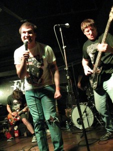 Starting off last night’s punk rock invasion of Greenpoint, Brooklyn was Night Birds…a band that features former members of the Ergs! and Hunchback and sounds like they’re inspired by surfer music and old school Cali punk bands like Dead Kennedys and Black Flag. These guys were full of energy and never stood still for more than a second. Guitarist, Mike Hunchback leapt into the crowd and spent most of the time off the stage. He was a good sport and welcomed the heckling after breaking 2 guitar strings which slowed down the set just a tad. The catchy “Midnight Movies” was definitely a highlight which was also the title of their 7″ single at the merch table which features art by Mike Diana…dirty stuff with a whole lotta dick in the artwork. What’s up wit dat? They also have a new CD called “Fresh Kills Vol. 1” which features a lot of previously released stuff from their records and demo cassette. Definitely check them out!