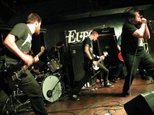 Teargas brought the heavy artillery from Brisbane, Australia, but played to a crowd that looked like they would rather have been at a poetry reading…too much standing with the arms folded and not enough moving for a hardcore show. They played a quick half hour set complete with microphone problems…actually the lead singer accidentally unplugged his mic and sang unplugged for half a song then sang on a crappier mic for the rest of the set. They still brought the crust thunder from down under and sounded awesome. Their set included songs such as “The Mirror Stared Also” and “The Sound of Hammers Must Never Stop” from their first and super limited demo and first release on vinyl. They had a record for sale titled “The Way Of All Flesh” on Narm Discos. Recommended stuff!