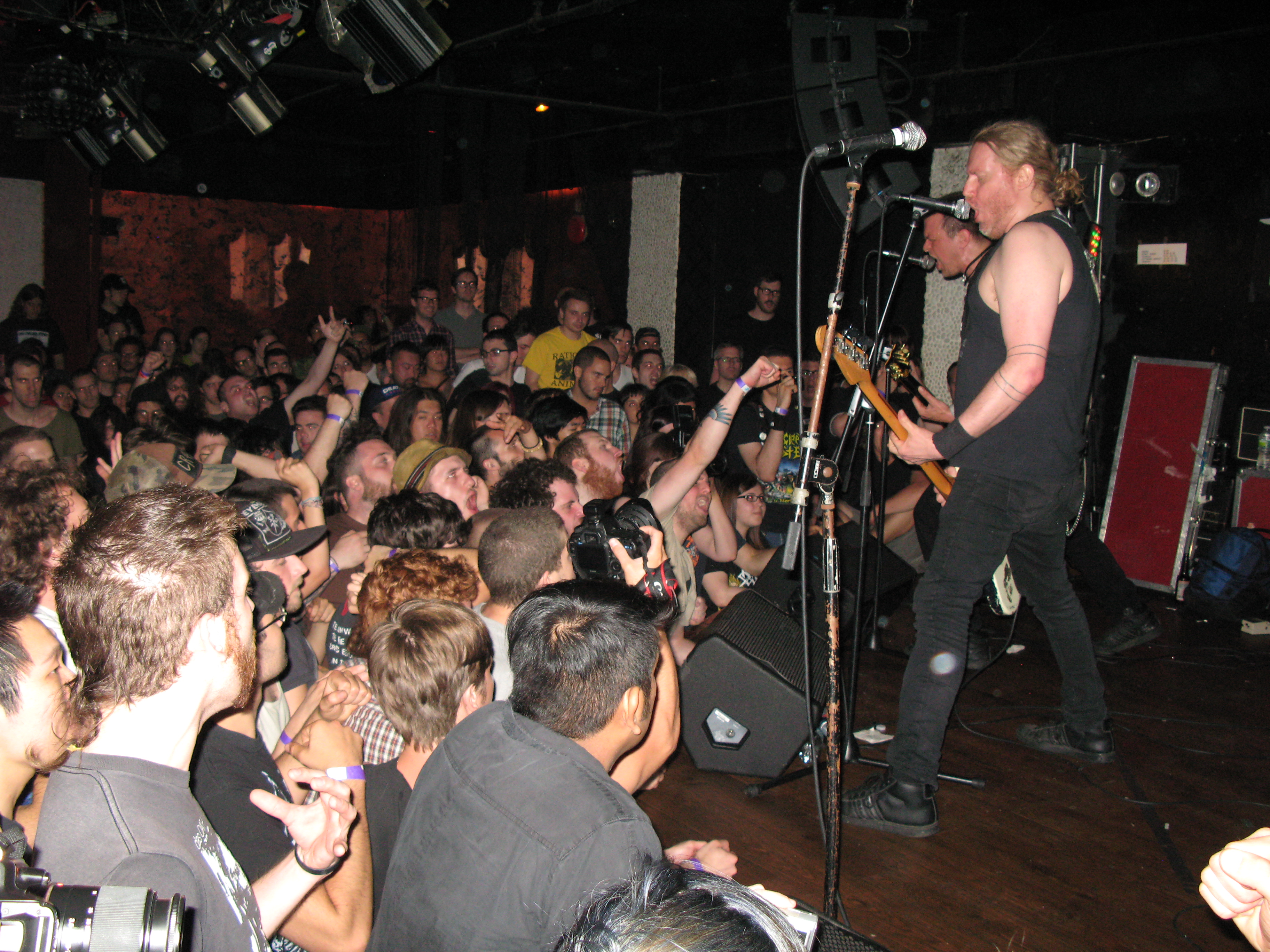 Tragedy was the reason the club was packed from wall to wall on a Tuesday night at 11:30 pm. As soon as the lights got dim and the band took to the stage, fists were raised and the crowd got increasingly crazier after every song. In case you don’t know…Tragedy are legendary in the hardcore punk scene with very little to no online presence. They sound inspired by bands like Discharge, Japanese hardcore bands and even d-beat and crust. Very heavy stuff indeed. Despite the microphone problems, their apocalyptic songs got the crowd moving, moshing, slipping, sliding and tumbling. My favorite song of the night had to be “The Ending Fight.” A real banger! Killer vocals by Todd Burdette. Lots of people of all shapes and sizes jumped into the pit…one fat dude looked like a jumbo jet as he leapt into the crowd. I’m pretty sure there were no survivors after the crash landing. The Tragedy album from 2006 “Nerve Damage” is the ish…See you at the next show!