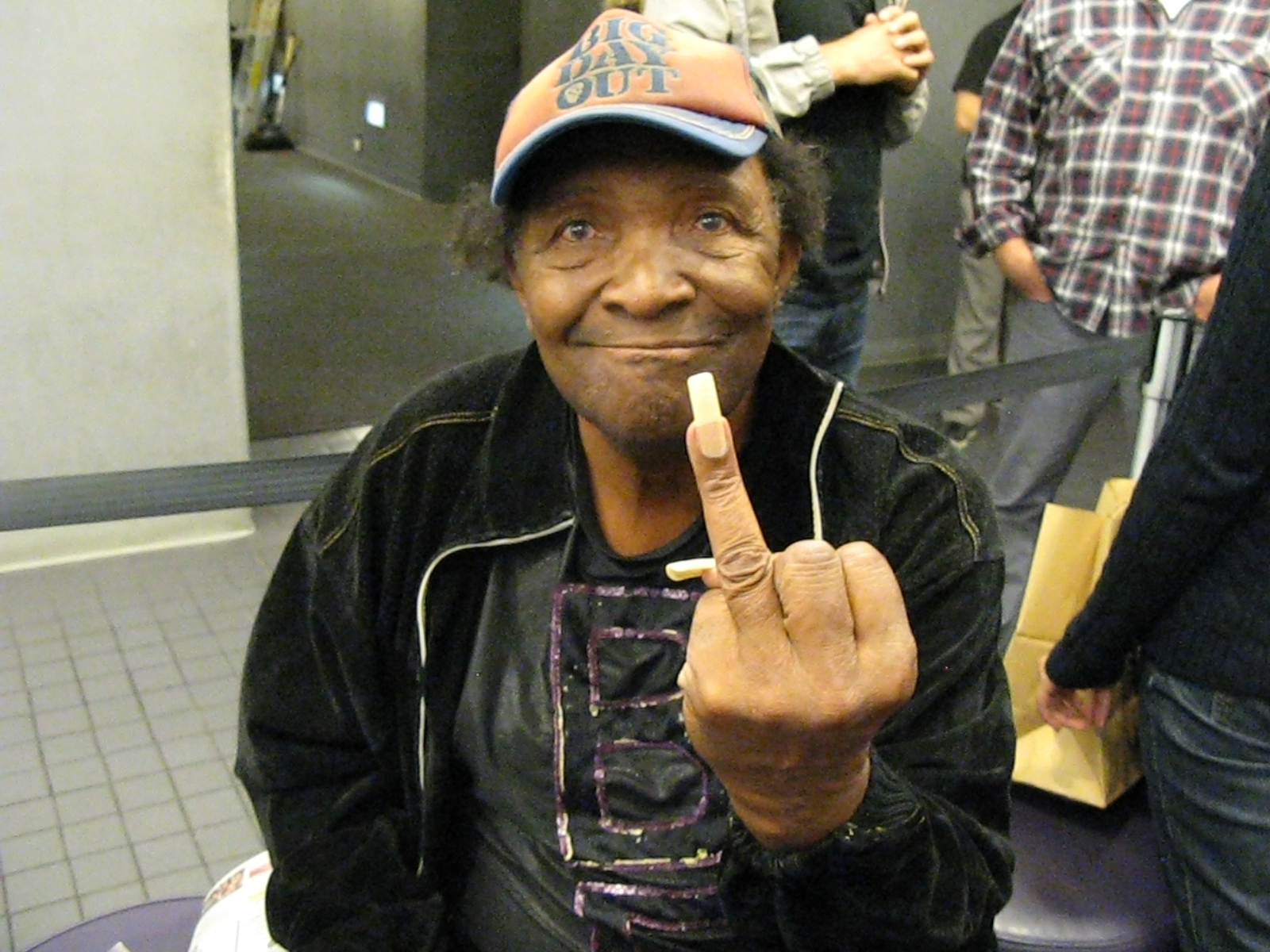 Before slipping away to obscurity, Blowfly joins forces with a drummer, Tom Bowker in 2005. Tom becomes Blowfly’s manager and drummer, they form a band, record new songs and take the show on the road. By this time, Blowfly is in his senior years and his arthritic knee and unhealthy food choices (the one scene where he’s eating a sloppy, greasy unidentifiable meal from McDonald’s is hilarious and sick!) ain’t helping the old man get the bills paid. The film focuses on Blowfly’s struggle for success while touring dingy bars in the United States and playing in front of unappreciative crowds in Germany.