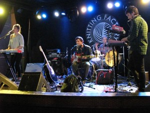 There was a free BrooklynVegan showcase at the Knitting Factory on Oct. 20 during the CMJ Fest. I missed the Yellow Ostrich, but just made it for the start of the Still Corners 1:15 PM set. I’ve been listening to their new album nonstop. “I Wrote In Blood” sounds like a song from Twin Peaks mashed with a Wutang Clan beat. Hundred Visions from Austin, TX rocked out with songs that mixed indie rock, with some funk and new wave. The band was energetic and the lead singer hopped around a lot-they were fun to watch. Sorry, to hear that the band’s van and most of the gear got stolen the night before.
