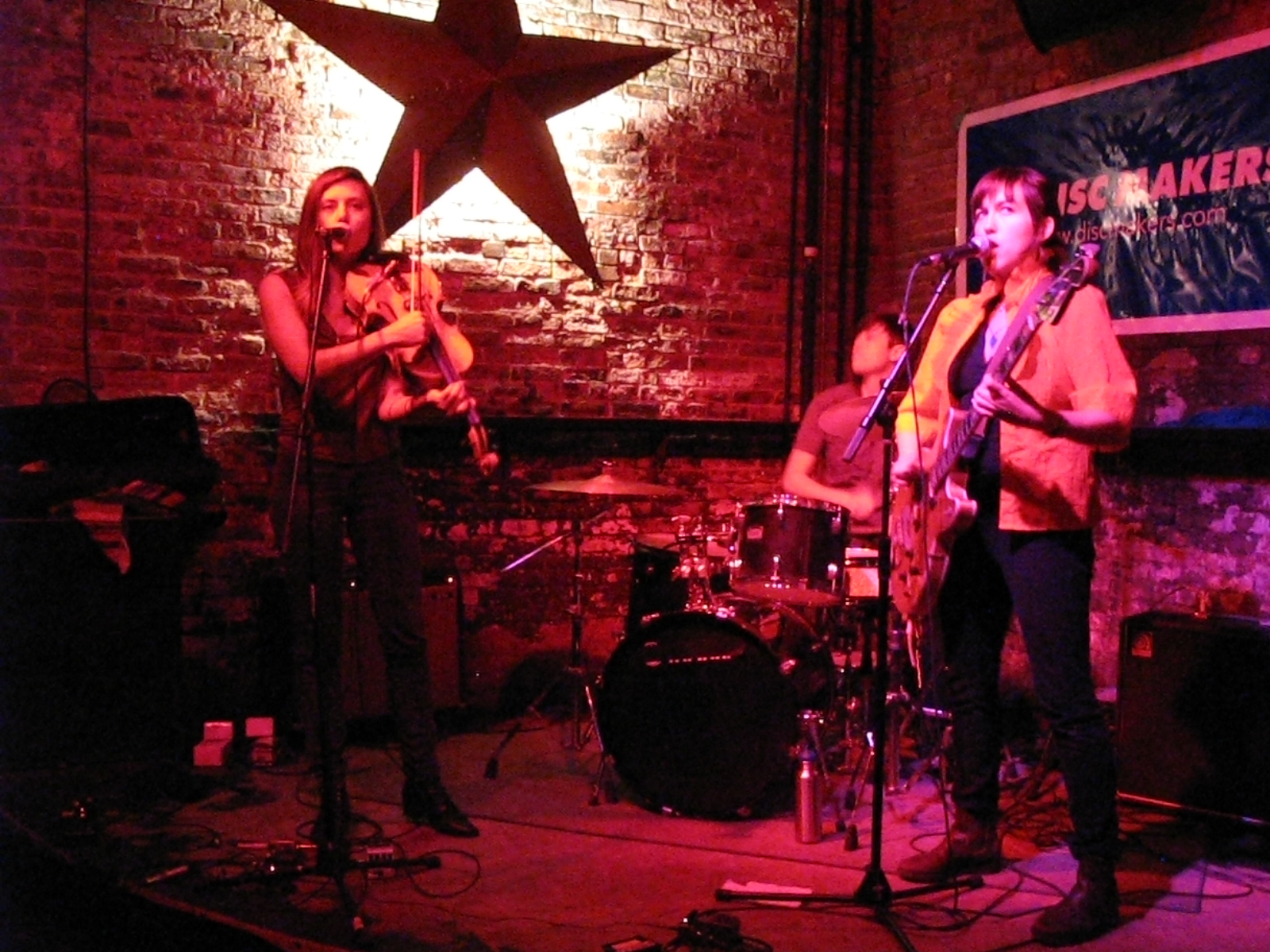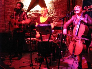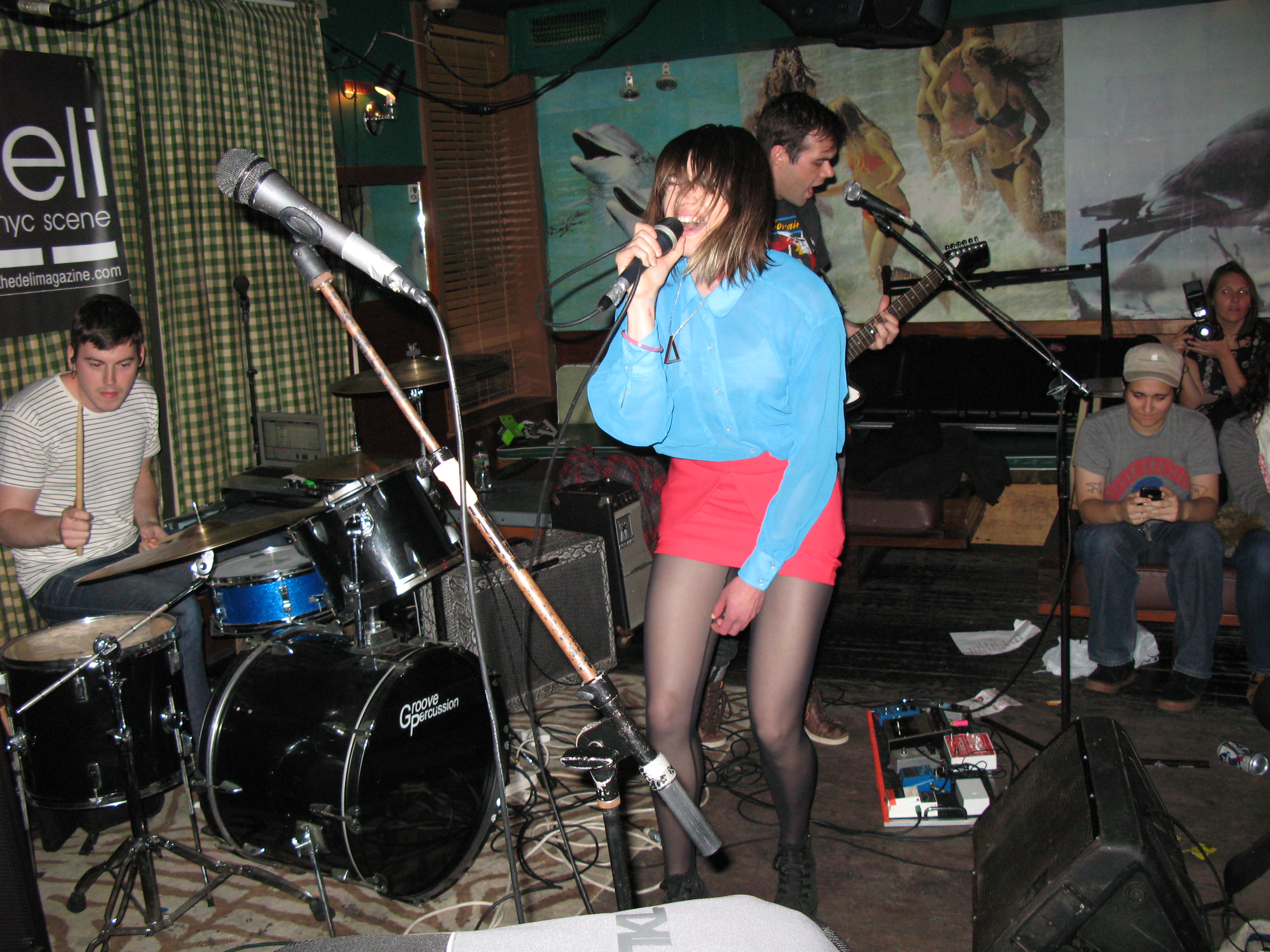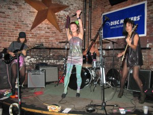 Later that night at the Woods in Williamsburg Broooklyn, there was a Tom Tom Magazine’s showcase featuring an interesting mix of bands featuring female percussionists. The night featured many bands including Brute Heart from Minneapolis featuring 3 women on bass, viola and drums. Their songs can get tribal and abstract, but it’s good stuff! Pearl And The Beard also rocked the stage with their fun, soulful folky tunes! This trio from Brooklyn (Jocelyn Mackenzie, Emily Hope Price, and Jeremy Styles) sing and play a variety of instruments, but mostly guitar, glockenspiel and cello. They always play a fantastic live show…highly recommended band! Japanese female punk band, Hard Nips were also in the house. Emi, Mariko, Yoko, and The Gootch got the party moving with their pop punk songs. “Children Of Satan” go the fists pumping! Coasting, a two-piece from Brooklyn featuring drummer Fiona Cambell and guitarist Madison Farmer who met while organizing d.i.y. shows, brought their lo-fi songs complete with killer riffs and booming beats. Next time I see them, I’m definitely buying all their records on the merch table!